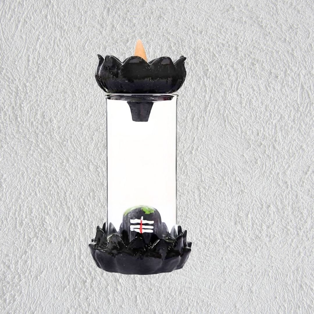 Simply place a backflow dhoop cone on top, and enjoy the enchanting reverse smoke cascade gently flowing over the Shivling — creating a calming visual effect that enhances meditation, spiritual focus, or home aesthetics. With 10 free incense cones included, it’s ready to use right out of the box.