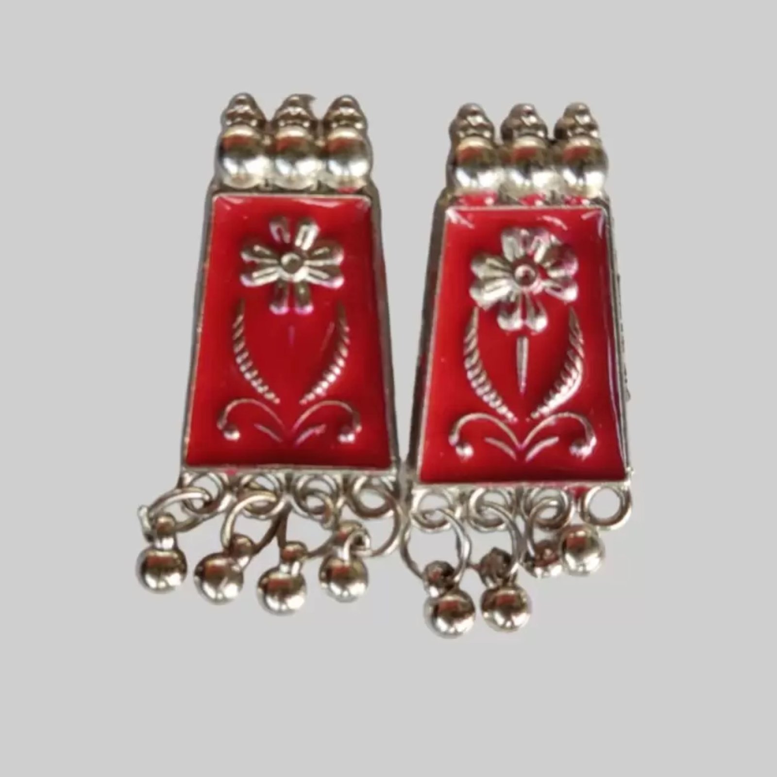 The set features German silver plating, which adds a delicate yet classy finish. This unique combination of oxidised silver and German silver plating gives the jewelry a traditional yet modern look, making it a standout piece.