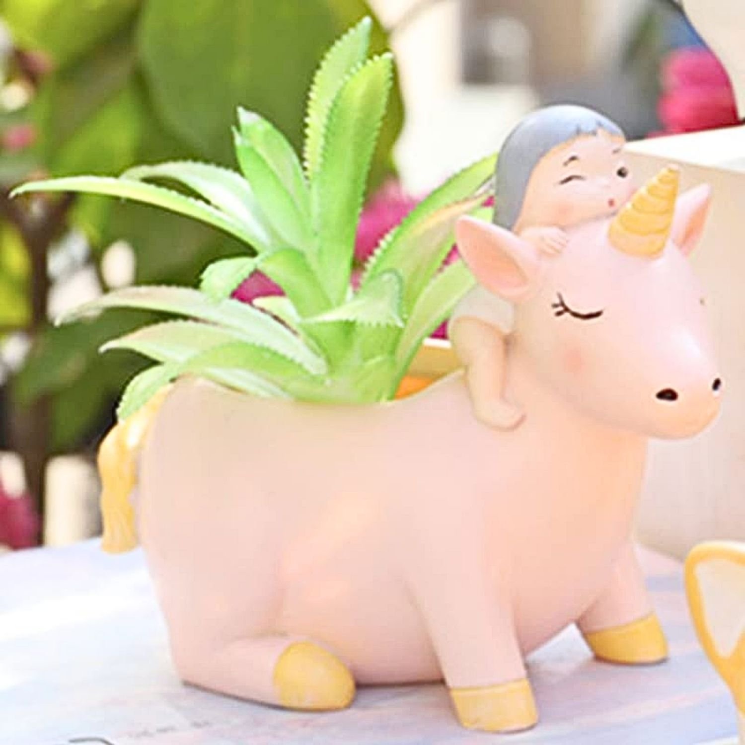 Not only is the Pink Cute Unicorn with Little Girl an aesthetically pleasing addition to your decor, but it also serves multiple practical purposes. Use it as a playful table decoration that stands out in any room, or repurpose it as a stylish pen holder or stationery holder on your desk. The thoughtful design allows it to double as a planter, making it a delightful home for your favorite small plants or succulents. This versatility ensures that your unicorn figurine is not just a decoration, but an integral part of your daily life.