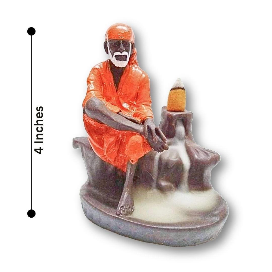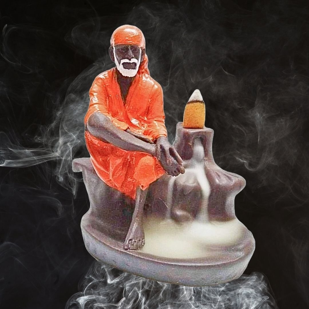 Bring divine serenity into your home with this Smoke Backflow Waterfall Sai Baba Incense Holder. Crafted from premium polyresin, this intricately designed showpiece features a spiritual depiction of Sai Baba, radiating peace and positivity. When a backflow incense cone is placed on the top and lit, it produces a captivating reverse smoke effect, cascading down like a gentle waterfall.