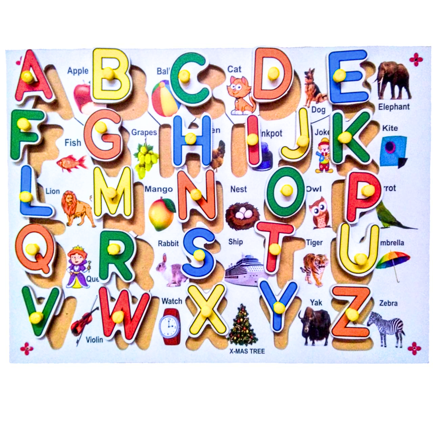 Learn Alphabet with Fun – Pegged letters A-Z with colorful design